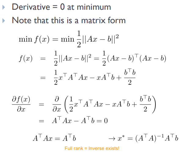 이 때 A가 full rank이냐, 아니냐에 따라 풀이 방법이 달라진다.